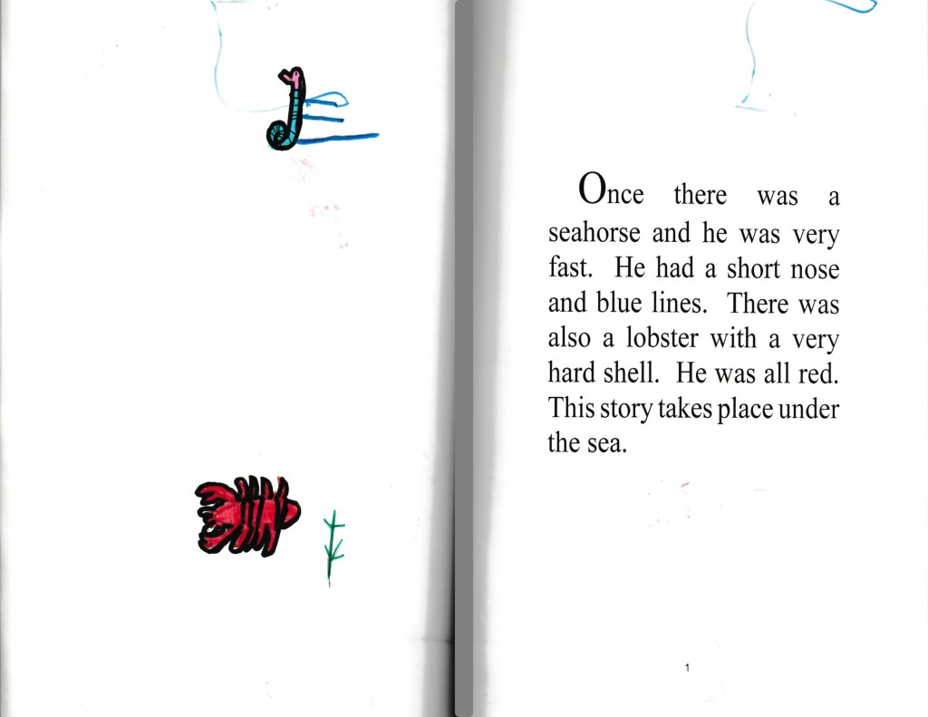 The other day I had some family over to see the new house and to go out to dinner. My dad surprised me with a copy of what is technically my very first book. Seahorse Troubles written and illustrated by yours truly. It brought back so many memories and honestly, in fourth grade, I was more excited about the art than the writing. But I think it still solidified my desire to always work creatively.